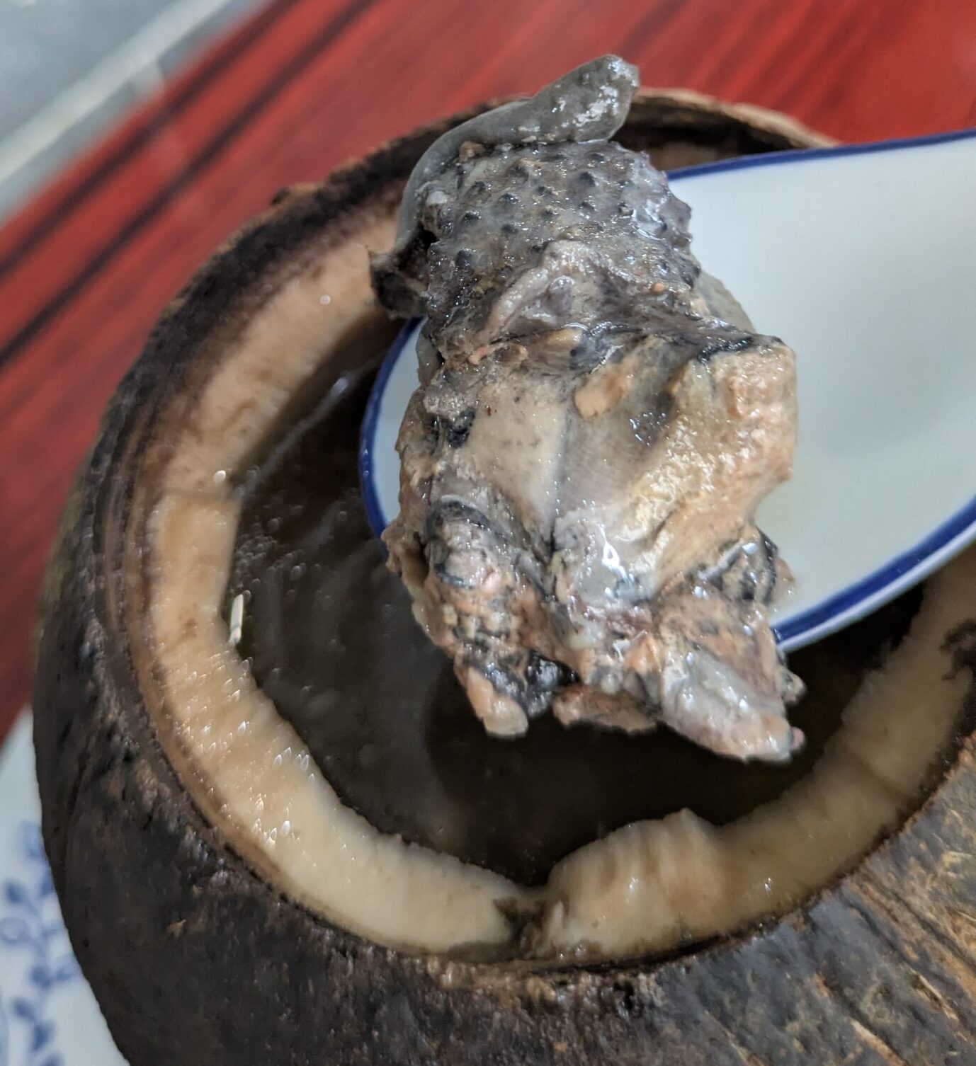 一方で、スープはココナッツジュースを使っており、かなり透明感がありますが、烏骨鶏の旨味や他の薬膳食材との相性も良いのか、旨味もある上に飲みやすい美味なスープとなっています。